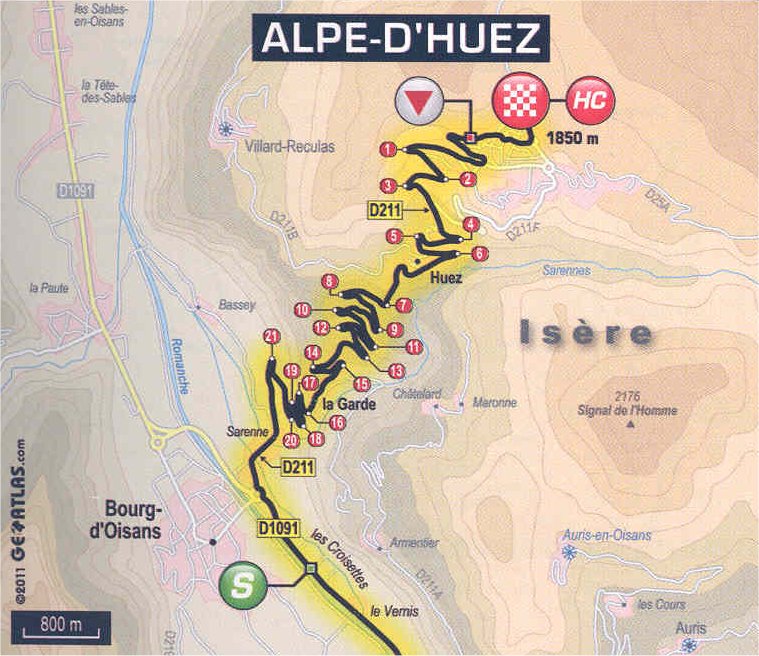 (à compter du Km 0 de l'ascension, à 13,8 Km du sommet) Marco Pantani en 1995 : 36'50'' Moyenne : 22,48 Km/h |